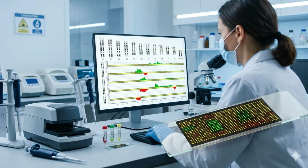 Clinique Vie – ¿Qué es el array CGH? Contacta Con Nosotros ¿Qué es el array CGH? El array CGH, también conocido como hibridación genómica comparada en microarrays, es una técnica avanzada de análisis genético que permite detectar alteraciones en el ADN, concretamente pérdidas o ganancias de material genético. Se trata de una herramienta clave en […]