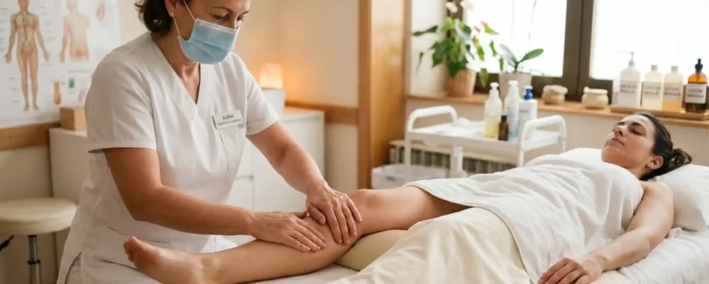 Clinique Vie – ¿Cuáles son los riesgos del drenaje linfático manual? Contacta Con Nosotros Clinique Vie – Riesgos del drenaje linfático manual: qué debes saber antes de tu sesión El drenaje linfático manual (DLM) es una técnica terapéutica que mejora la circulación de la linfa, reduce la retención de líquidos y favorece la recuperación del […]